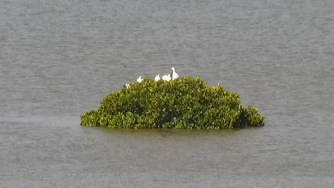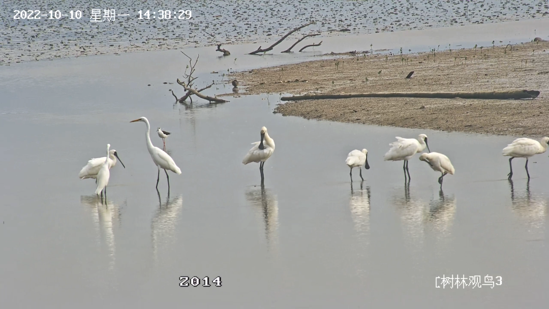 10月10日早上,广东内伶仃福田国家级自然保护区管理局工作人员通过4K高清全景摄像机视频监控惊喜发现,6只黑脸琵鹭伫立在红树上。