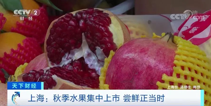 最近,水果摊上就刮起了一股柿子风。在上海杨浦区国和路农贸市场,水果摊上的各色水果琳琅满目。青绿葡萄、浅白生梨、火葫芦柿子这些新品种深受消费者青睐。商户告诉记者,火葫芦柿子产自陕西,表皮薄如蝉翼,轻轻一咬,汁水满嘴都是。这种甜甜糯糯的水果,最近有点“火”。新上市不久的,还有软籽石榴。摊主掰开石榴,晶莹剔透的果实颗颗丰盈饱满。产自云南的水果石榴,一个比成年人的拳头还大。