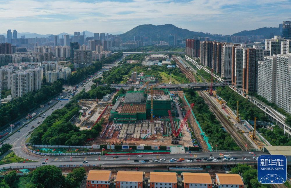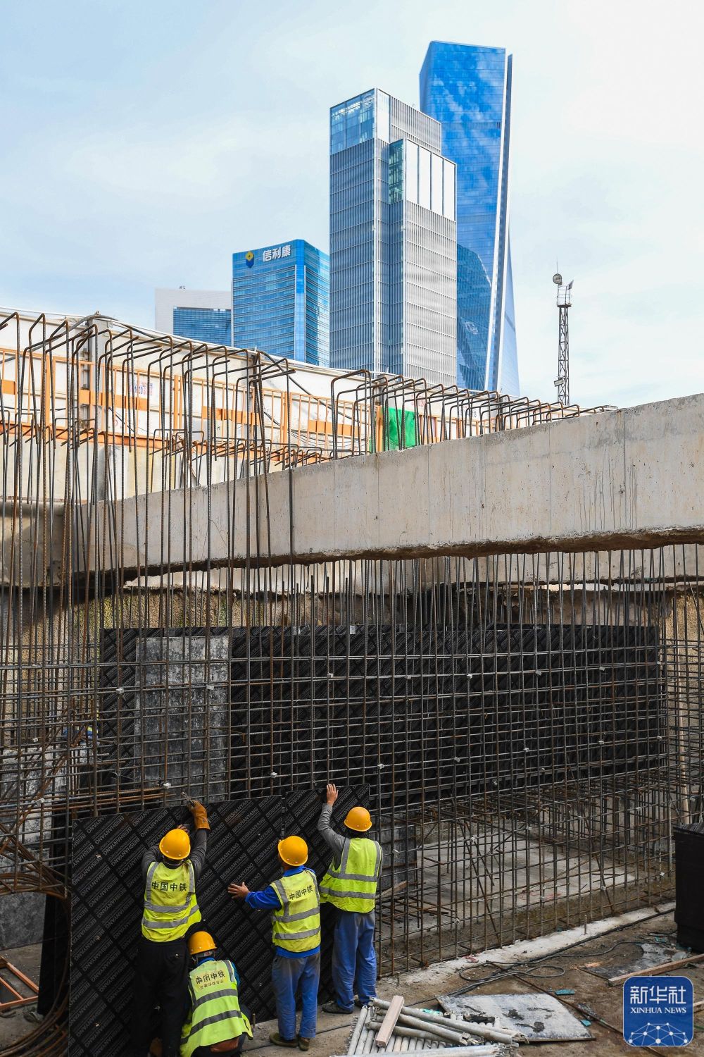 由中铁上海局承建的深圳前海桂湾街坊商业配套项目交通改善工程进展顺利(10月19日摄,无人机照片)。