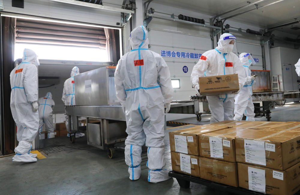 10月20日上午9点,第五届中国国际进口博览会的第一批进口冷链食品展品被运入总仓。在接下来的10天内,预计约100个全球参展商、3000箱冷链食品展品,将在总仓集中完成“最小包装”消毒和核酸检测。