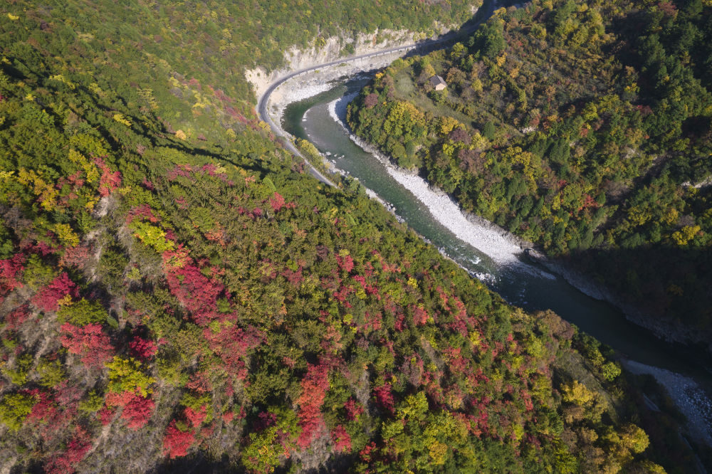 位于陕西省西安市周至县境内的秦岭景色(10月18日摄,无人机照片)。新华社记者邵瑞摄