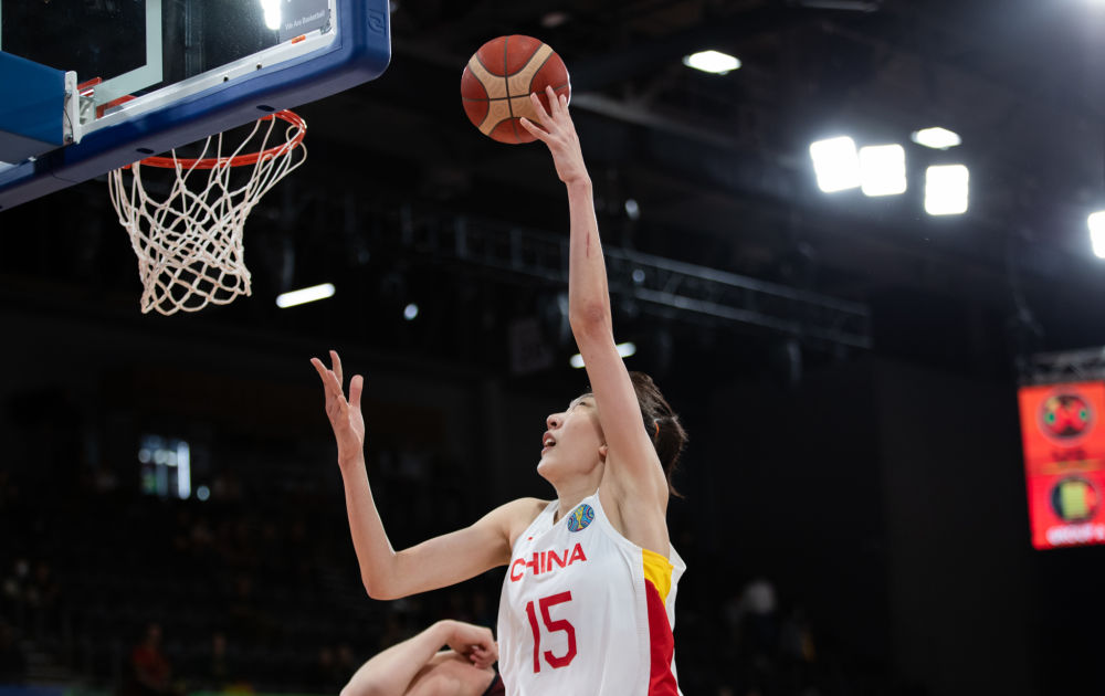9月27日,在2022女篮世界杯A组比赛中,中国队以81:55战胜比利时队。韩旭在比赛中上篮。新华社发(胡泾辰摄)