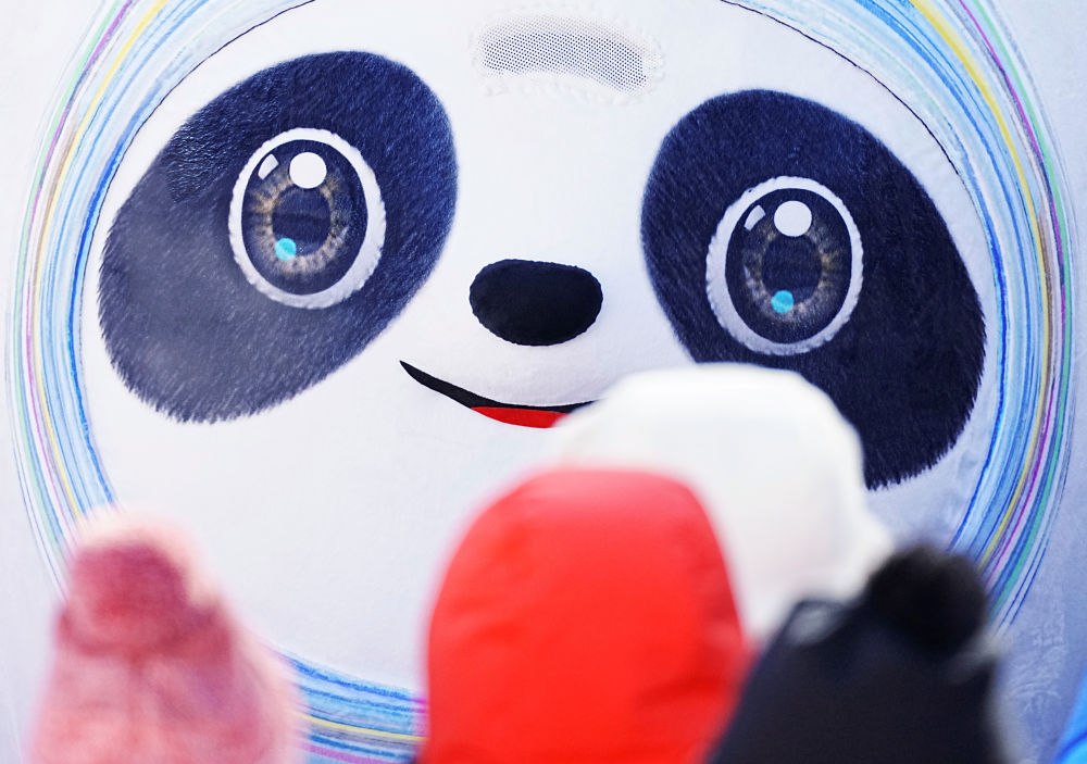 2月10日在颁发礼品仪式上拍摄的北京2022年冬奥会吉祥物“冰墩墩”。新华社记者 王建威 摄