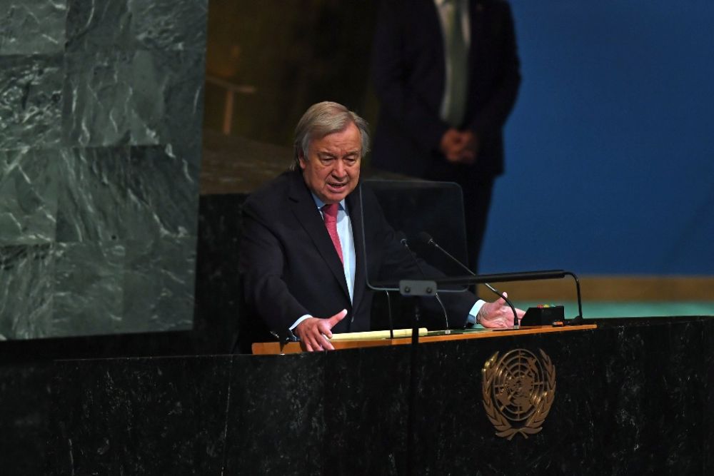 9月20日,在位于纽约的联合国总部,联合国秘书长古特雷斯在第77届联合国大会一般性辩论开幕式上致辞。新华社记者 李睿 摄