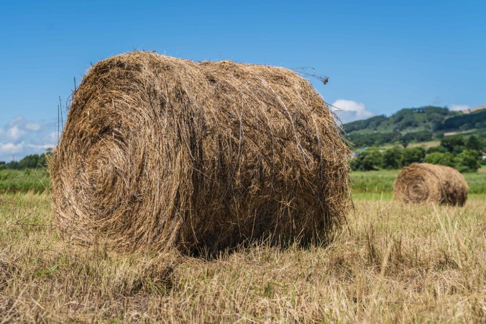 这是8月18日在俄罗斯符拉迪沃斯托克郊区拍摄的田野里收割后的牧草草垛。新华社发(郭飞洲摄)