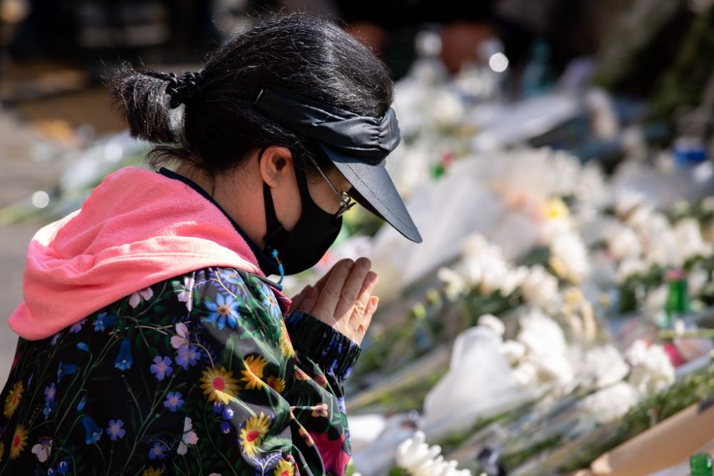 10月30日,民众在韩国首尔市龙山区梨泰院洞一带悼念踩踏事故遇难者。新华社发(李相浩摄)