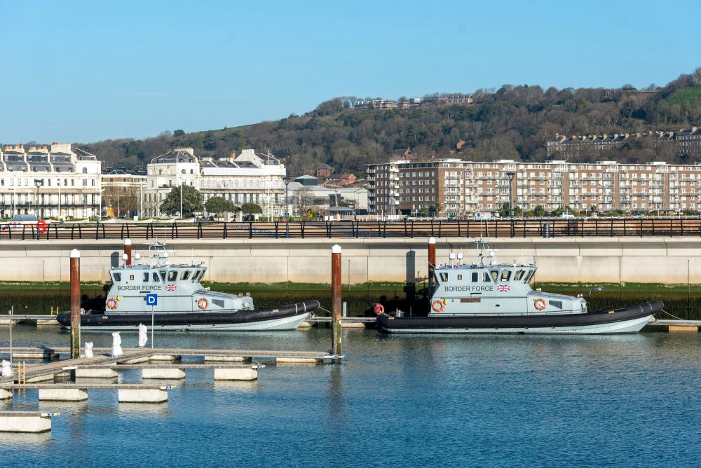 这是2021年11月29日在英国多佛尔拍摄的停泊在码头的边境执法队巡逻船。新华社发(雷伊·唐摄)