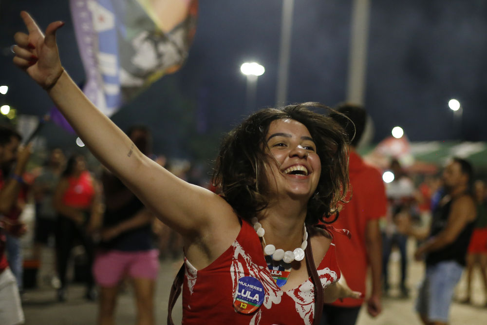 10月30日,卢拉的支持者在巴西首都巴西利亚参加庆祝活动。新华社发(卢西奥·塔沃拉摄)