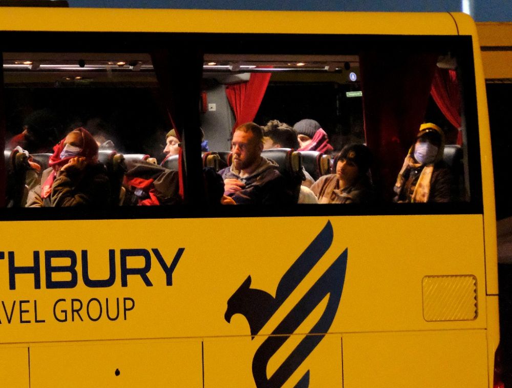 2021年11月24日,移民在抵达英国多佛后坐在车中等待离开。新华社发(史蒂夫·芬恩摄)