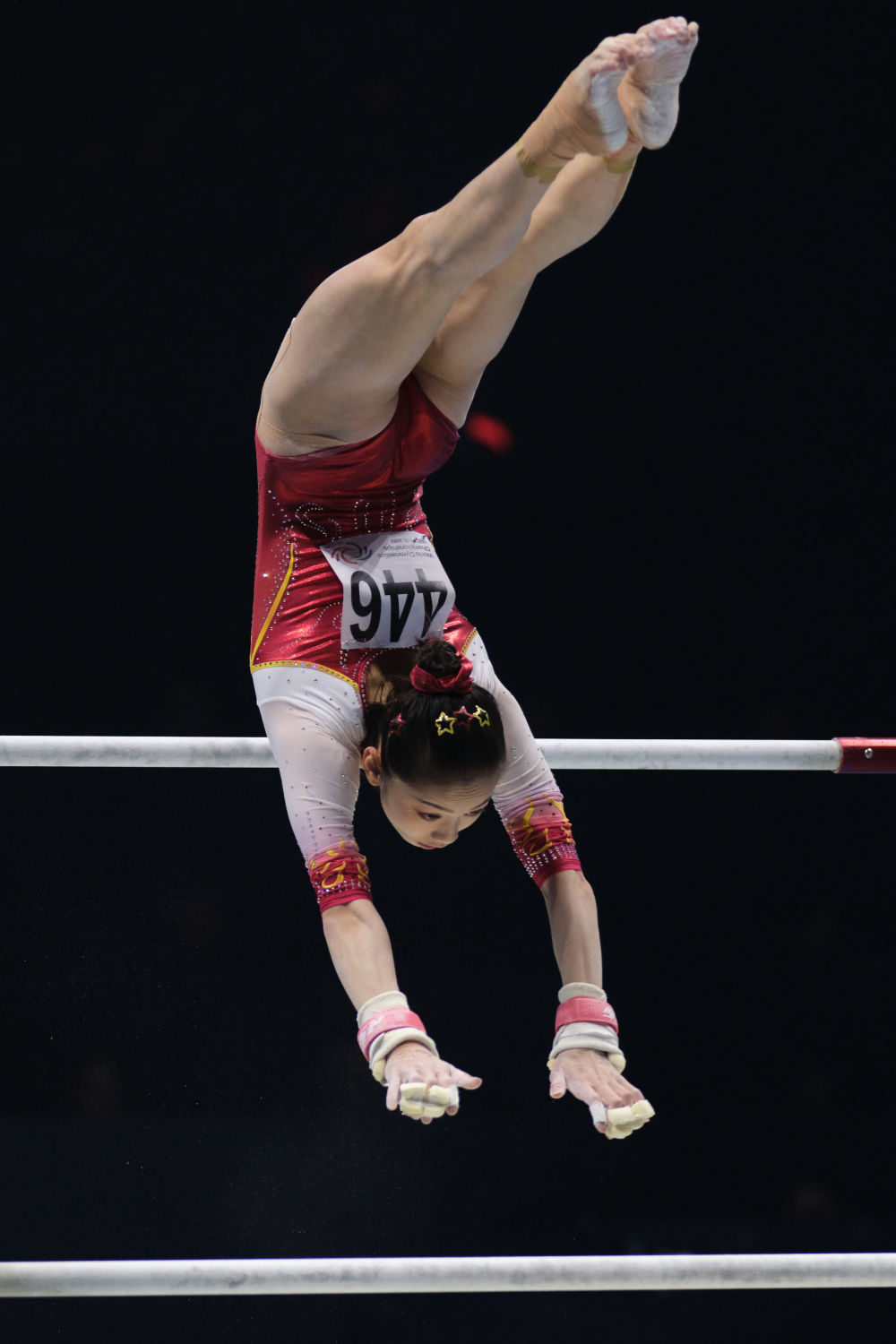11月1日,中国队选手韦筱圆在高低杠比赛中。新华社记者 孟鼎博 摄