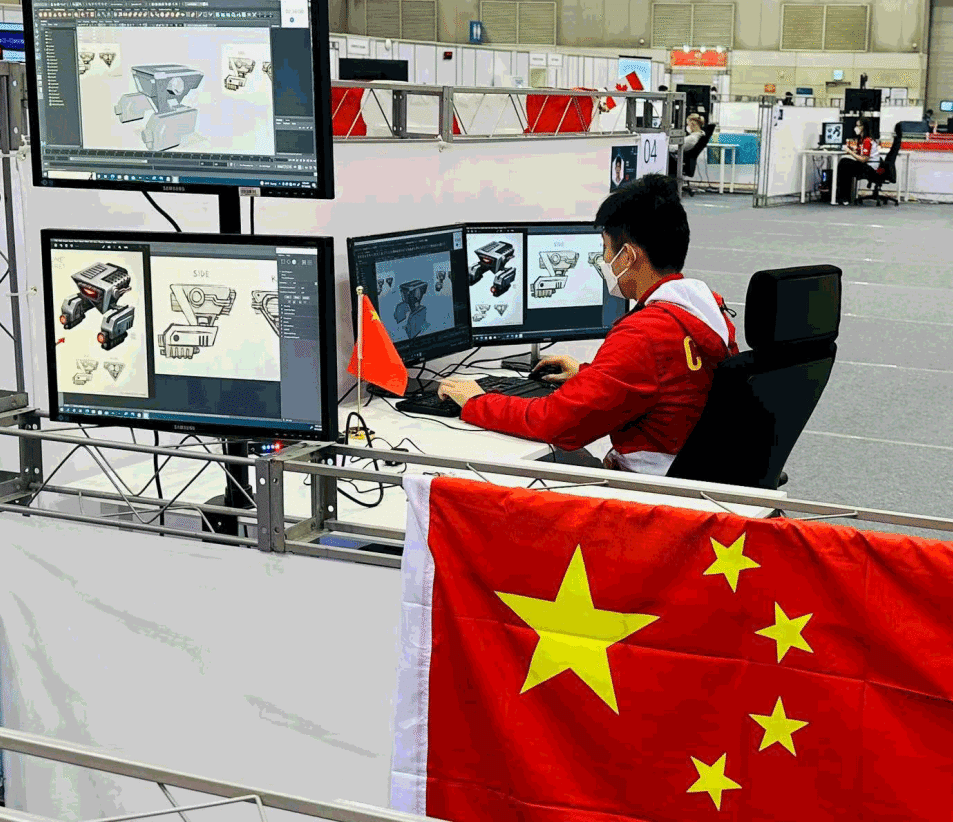 但拿到题目的那一刻,罗凯有点慌了。 比赛题型发生了重大调整,项目模块由原来固定的4个“突然”变成了8个。以前的4个模块环环相扣,而这次8个模块之间没有关联,有几个模块在题目思路的改变上甚至是罗凯没有接触过的。 在和专家、教练短暂地讨论后,罗凯冷静下来,沉着应战。 3D数字游戏艺术项目考核参赛选手对美学方面的色彩、比例、结构、造型等设计知识的掌握,要求选手能够熟练运用3D设计软件技术,在规定的时间期限内,完成特色鲜明、表达准确、技术指标符合规范的创意设计作品。