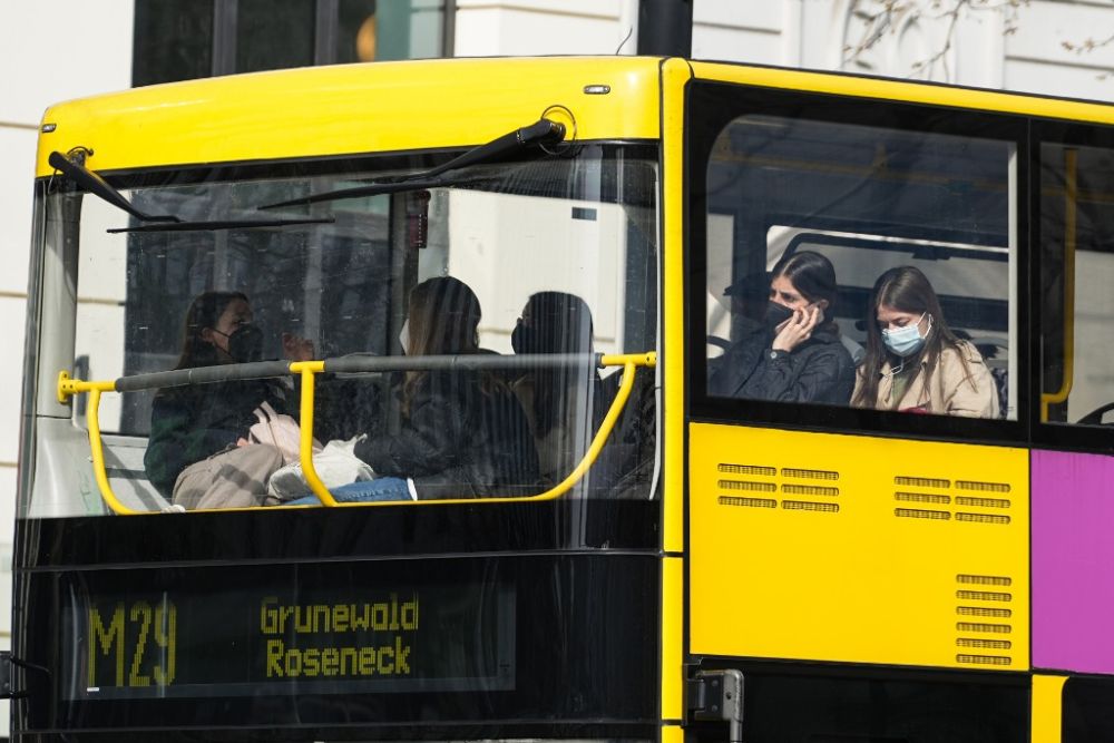 4月1日,人们在德国首都柏林佩戴口罩乘坐公交车。新华社发(斯特凡·蔡茨摄)