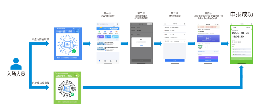 (1)入场前24小时内,通过“珠海航展”微信小程序中“防疫申报”完成入场防疫申报,并获得申报回执。