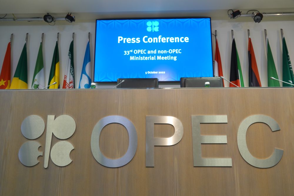 欧佩克与非欧佩克产油国10月5日在奥地利首都维也纳举行第33次部长级会议,决定自今年11月起大幅减产。图为10月5日在维也纳拍摄的欧佩克总部新闻中心。新华社发(王宙 摄)