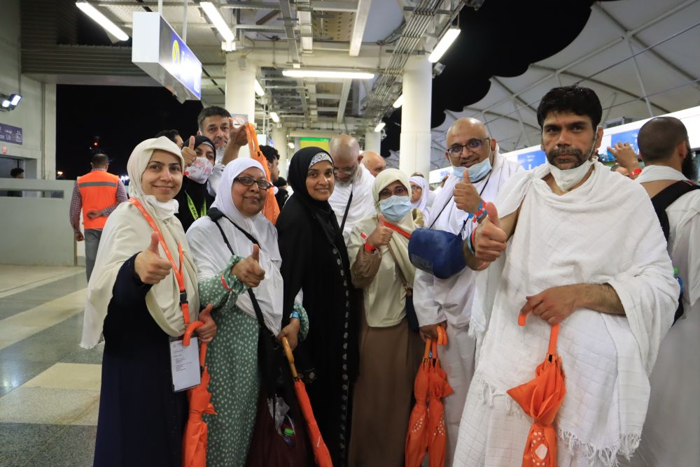 7月9日,在沙特阿拉伯麦加,乘坐中企修建和运营的轻轨列车的朝觐者称赞列车快捷舒适。新华社发(中国铁建供图/韩晓林摄)