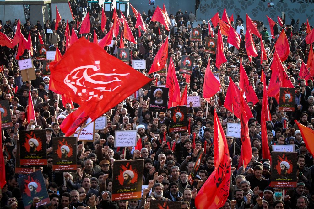 2016年1月4日,伊朗民众参加在首都德黑兰举行的集会,抗议沙特司法机关处决知名什叶派教士奈米尔。新华社发(艾哈迈德·哈拉比萨斯 摄)