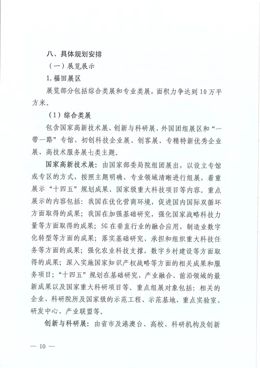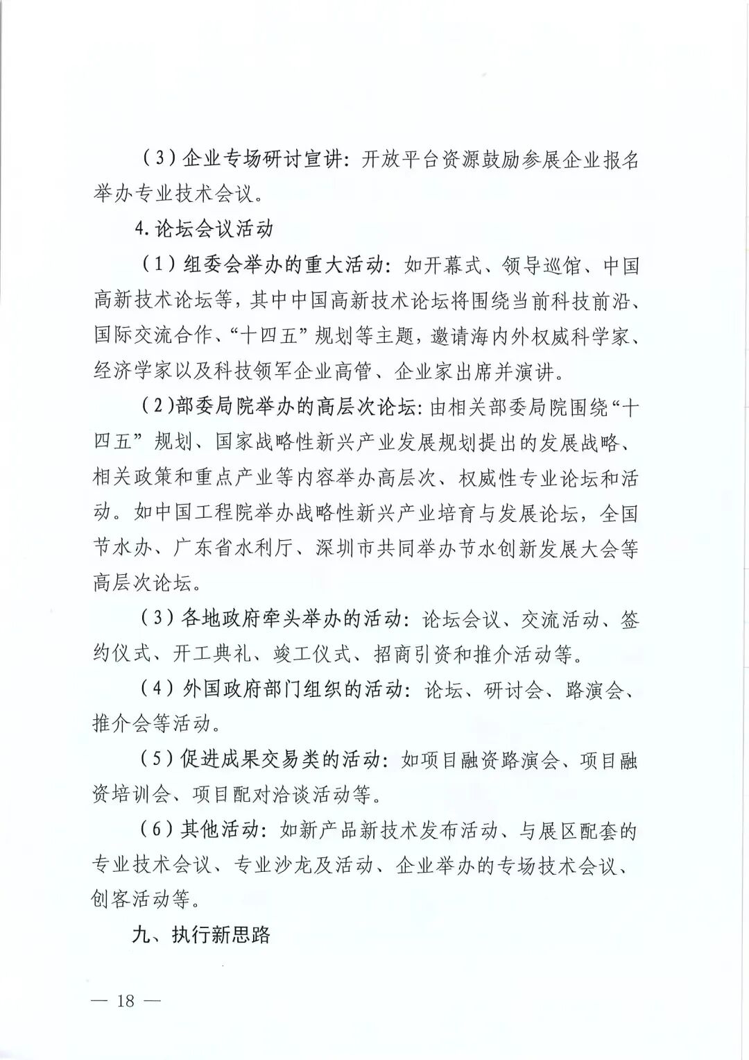此外,展会期间还将有部委局院举办的高层次论坛、各地政府牵头举办的各项活动、外国政府部门组织的活动、促进成果交易类的活动等等,内容丰富。
