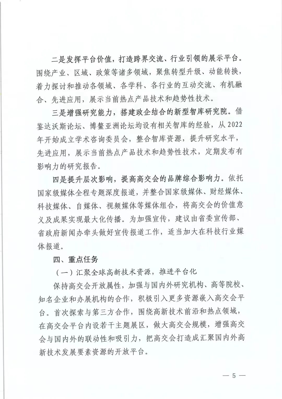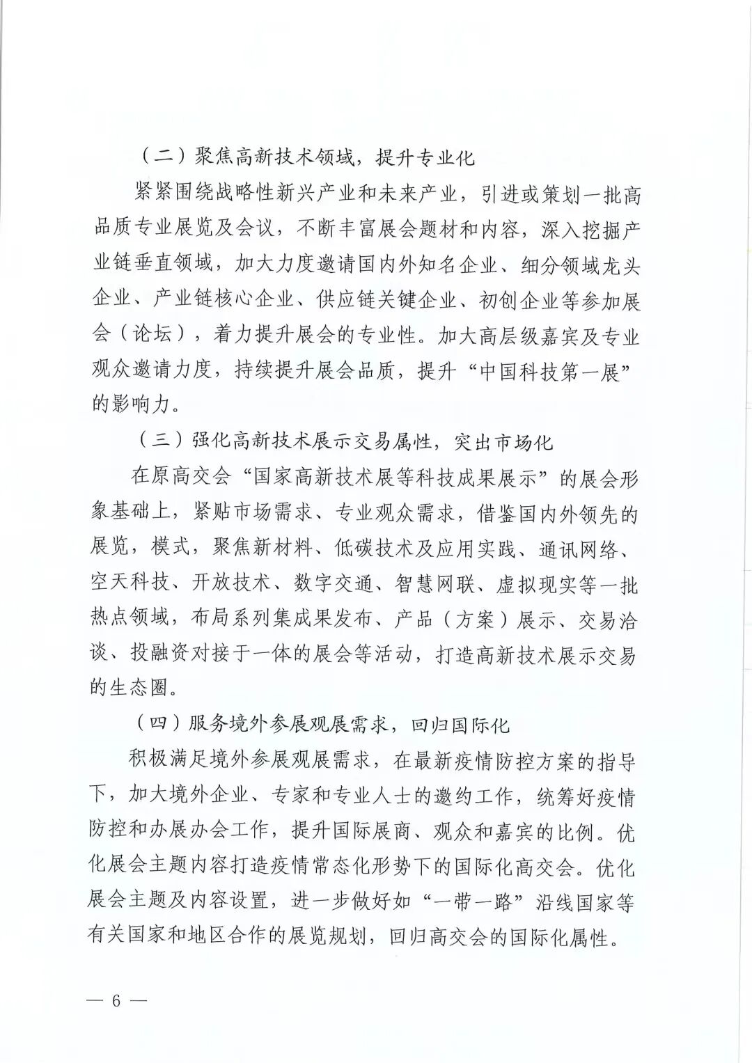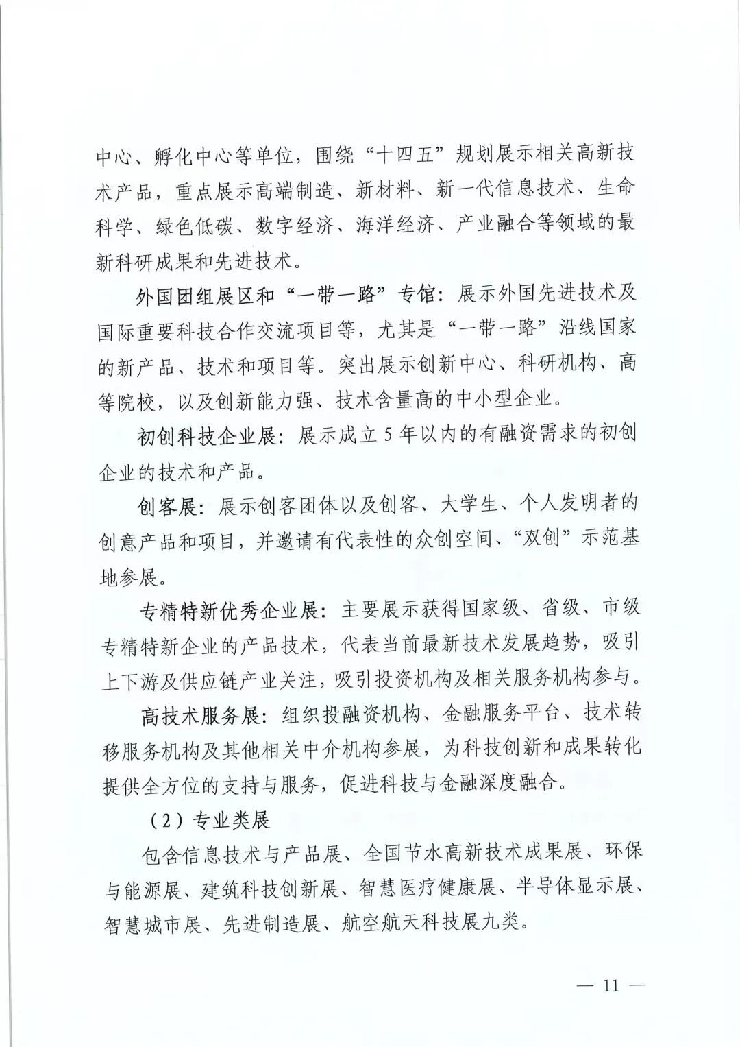 组委会在通告中鲜明提出,本届展会将围绕“十四五”规划布局和科技发展重点领域,聚焦战略性新兴产业和未来产业,引领行业发展,积极组织展览展示、会议论坛、技术交流、投融资对接等活动,推进产学研深度融合,促进新技术产业化规模化应用,为完善国家创新体系、加快建设科技强国、实现高水平科技自立自强,推动经济社会高质量发展贡献新力量。