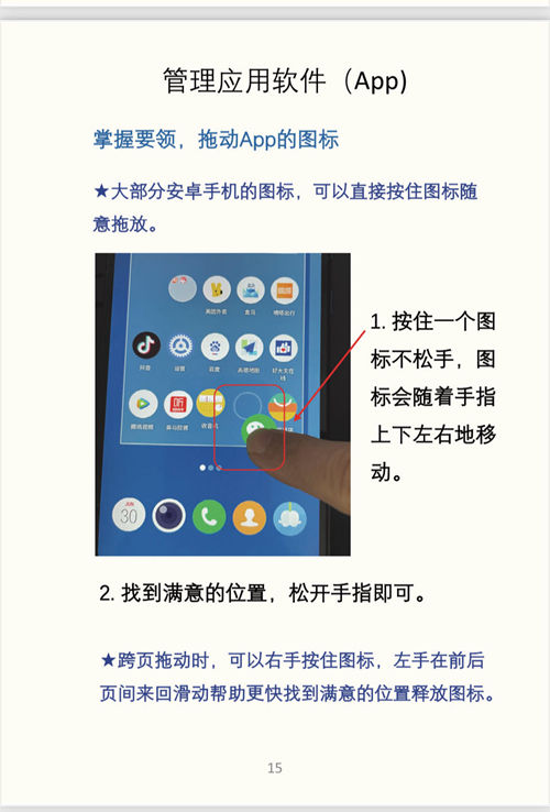 “做一本书吧!”刘思源突然有了主意,如果有一本触手可及的册子,老人们随时可以翻开查阅就能知道如何操作,这样老人们学习时的自信心也更强了。