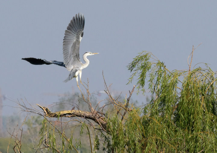 11月5日,一只苍鹭在安徽巢湖半岛国家湿地公园内飞翔。新华社记者郭晨摄