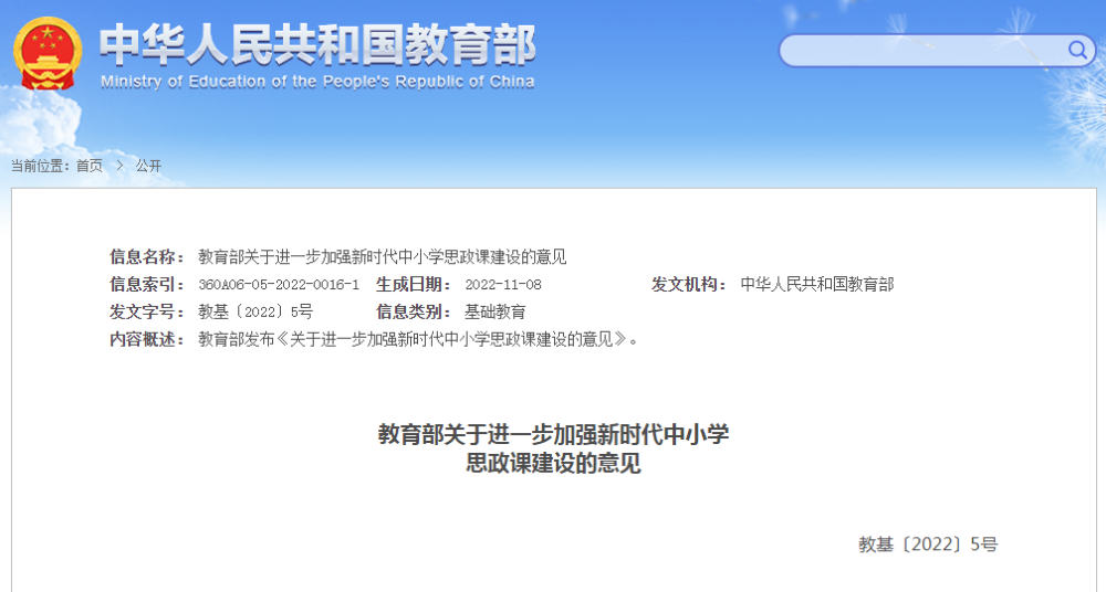 记者11月10日从教育部获悉,《关于进一步加强新时代中小学思政课建设的意见》于日前发布。意见指出,到2025年,中小学思政课关键地位进一步强化、建设水平全面提高。课堂活力充分激发,优质课程资源更加丰富,实践教学深入开展。思政课教师队伍专职化专业化水平明显提升,小学专职教师配备比例达到70%以上,初高中配齐专职教师,绝大多数教师具有比较扎实的思政教育相关专业知识。