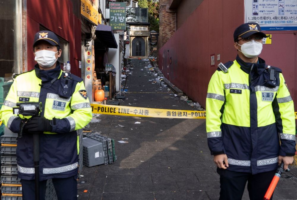 10月30日,警察在韩国首尔踩踏事故现场警戒。新华社发(李相浩摄)