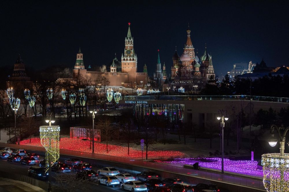 2021年12月11日在俄罗斯首都莫斯科拍摄的克里姆林宫和圣瓦西里教堂。新华社记者 白雪骐 摄