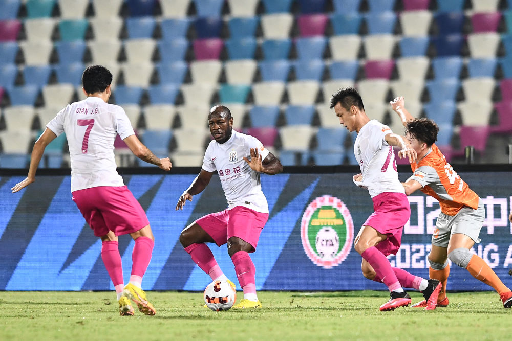 10月9日,上海申花队球员巴索戈(左二)在比赛中进攻。新华社发
