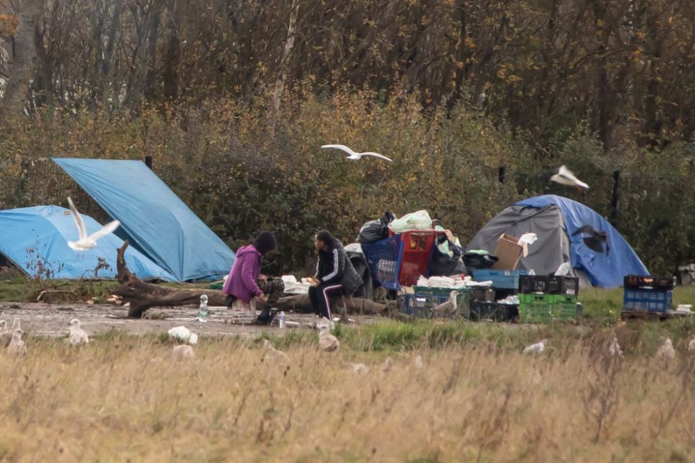 这是2021年11月26日在法国北部加来港附近拍摄的非法移民。新华社发