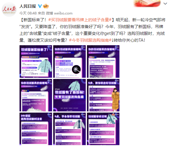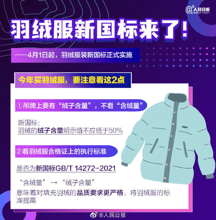 (原标题《新国标来了!买羽绒服要看吊牌上的绒子含量》)