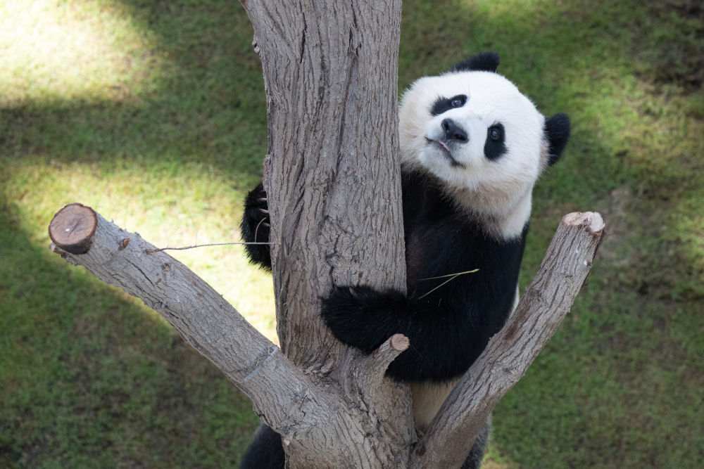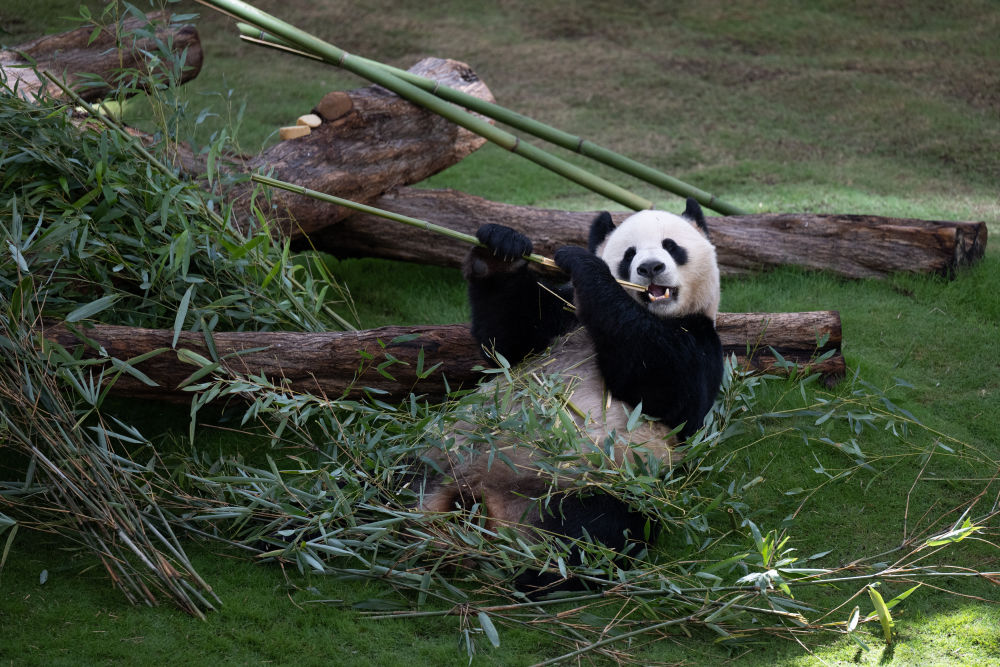 当天在豪尔熊猫馆,记者看到,两只熊猫都有自己专属的生活区,空调恒温,凉爽舒适,“京京”一直在吃新鲜的竹子,“四海”则更钟爱爬树。