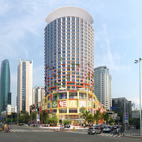 深圳妇儿大厦建于20世纪90年代,是深圳90年代高层建筑,随着城市更新和发展,这栋逐渐黯然失色的建筑,又焕发新面貌,并将凭借色彩缤纷的外墙和景观屋顶,成为深圳福田区一道亮丽的新风景。