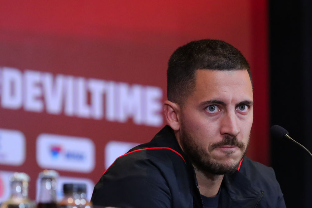 ↓2022年11月14日,阿扎尔在新闻发布会上介绍备战卡塔尔世界杯情况。新华社记者郑焕松摄