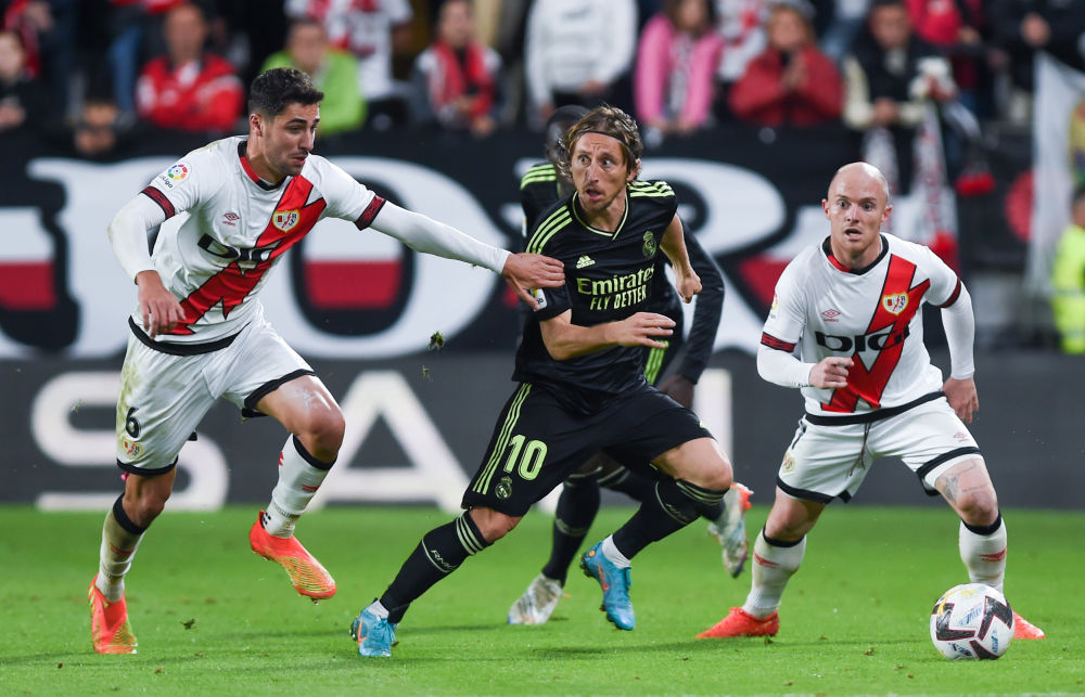 ↓11月7日,莫德里奇(中)在西甲比赛中拼抢。新华社发