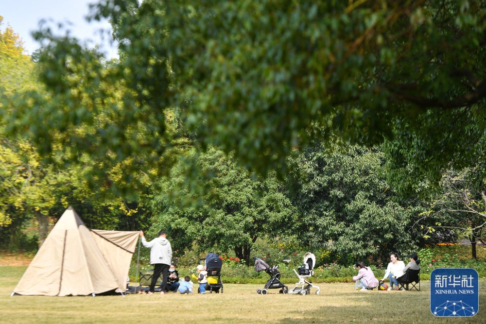 11月5日,市民在武汉东湖风景区露营。新华社记者 孙瑞博 摄