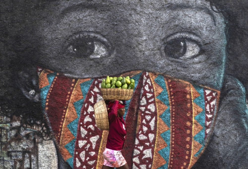 2021年8月24日,一名女子头顶水果走在海地太子港街头。新华社发(戴维·德拉帕斯 摄)