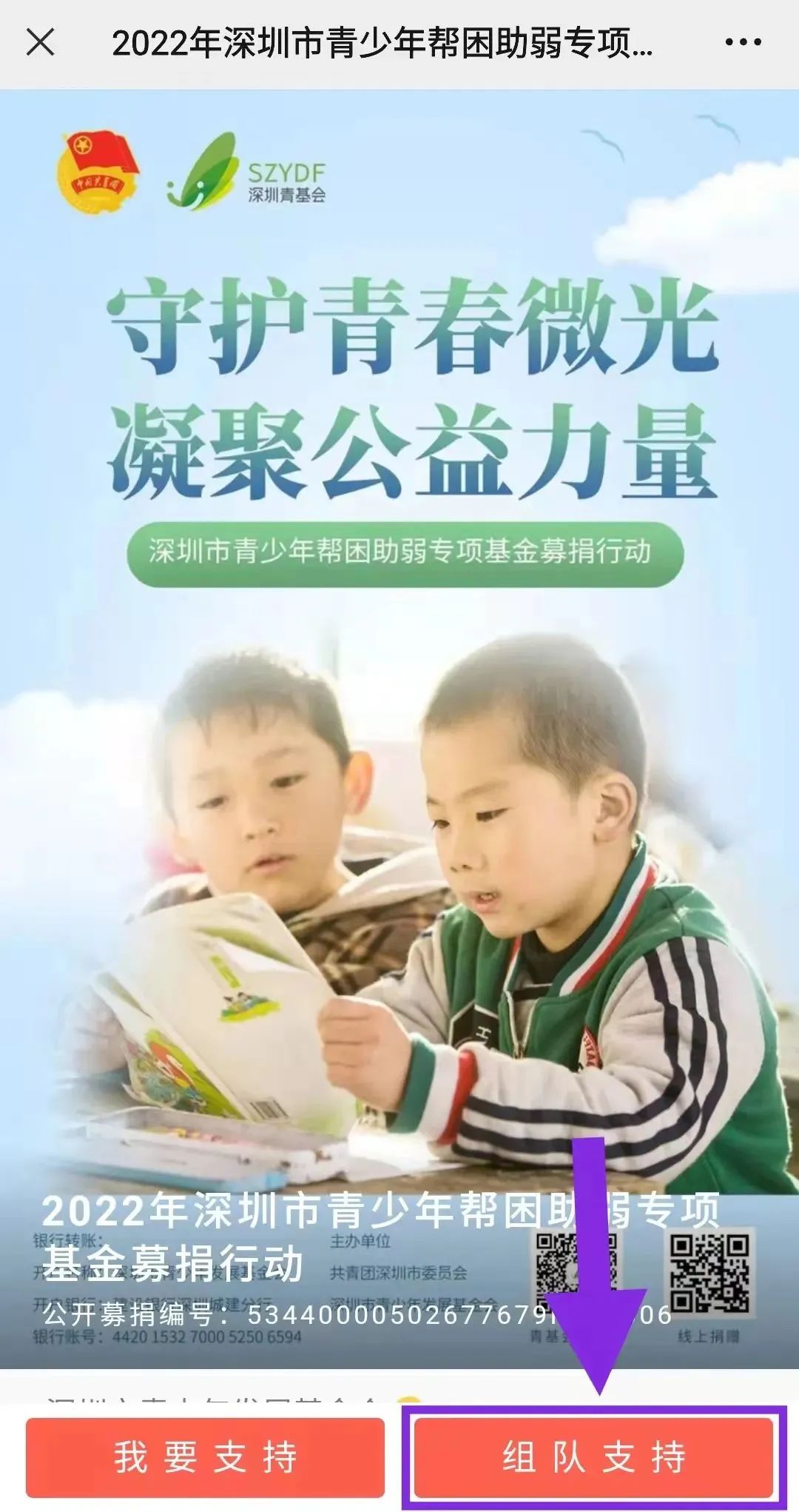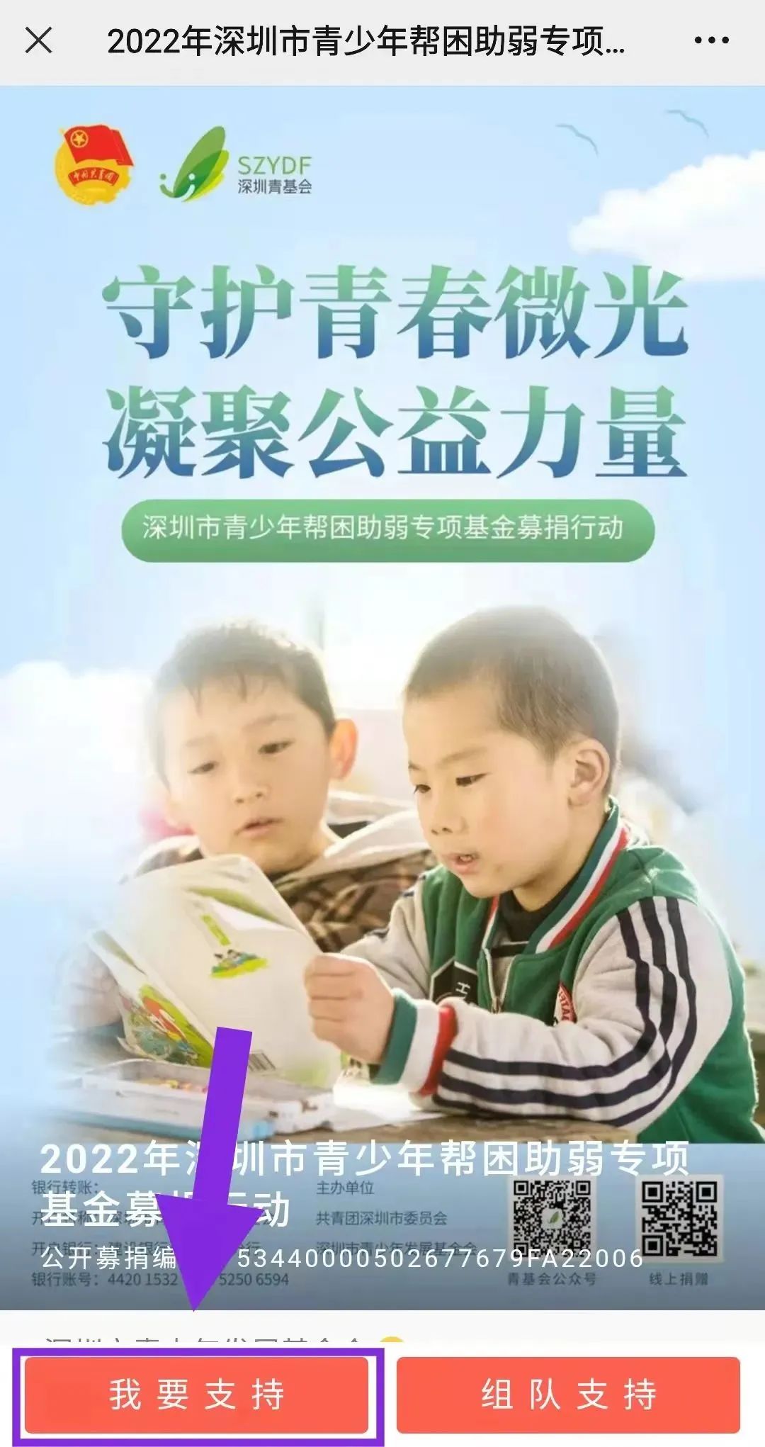 或直接扫描下方二维码参与「 2022年深圳市青少年帮困助弱专项基金募捐行动」↓