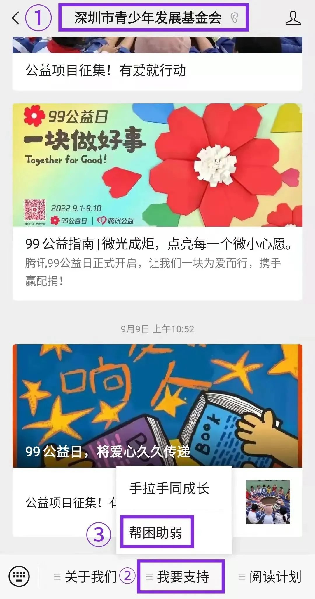 一、关注“深圳市青少年发展基金会”公众号