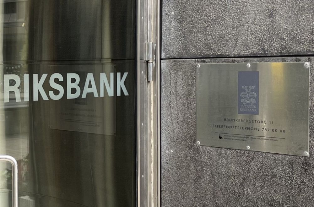 这是2022年9月27日在瑞典斯德哥尔摩拍摄的瑞典中央银行标识。新华社记者 付一鸣 摄