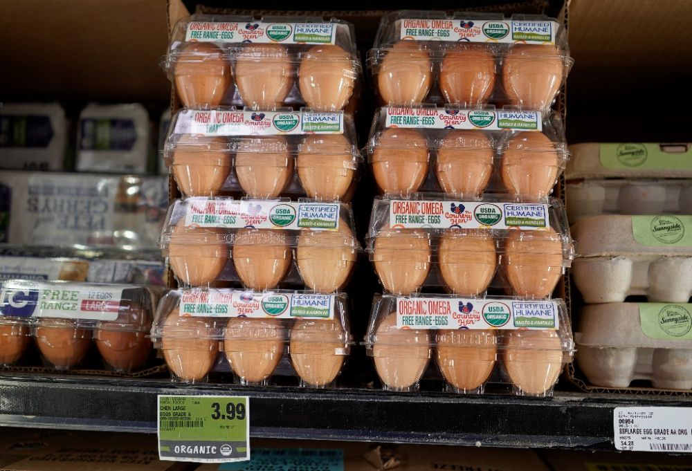 这是2022年4月5日在美国旧金山湾区米尔布雷一家超市拍摄的鸡蛋。新华社发(李建国摄)