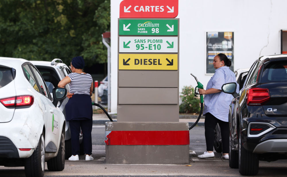 8月18日, 人们在法国巴黎郊区的一处加油站加油。(新华社记者 高静 摄)