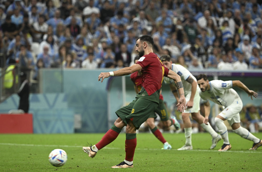 11月28日,葡萄牙队球员布鲁诺·费尔南德斯主罚点球命中。新华社记者李尕摄