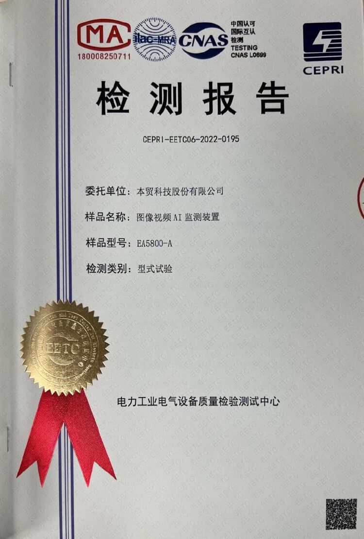 11月28日,冷健博士团队主持研发的图像视频AI检测装置,顺利拿到了电力工业电气设备质量检测测试中心的检测报告。