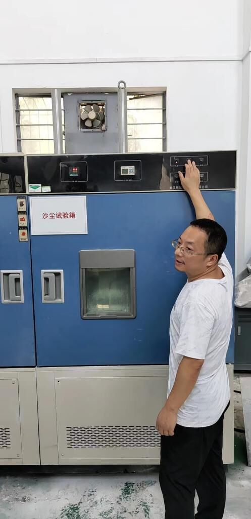 刘海峰正在对本贸科技研发的低功耗电力智能巡检系统进行防尘试验。