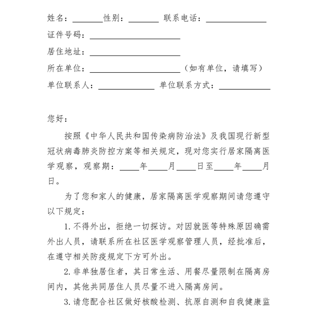 4.共同居住者或陪护人员一并遵守居家隔离医学观察管理要求。