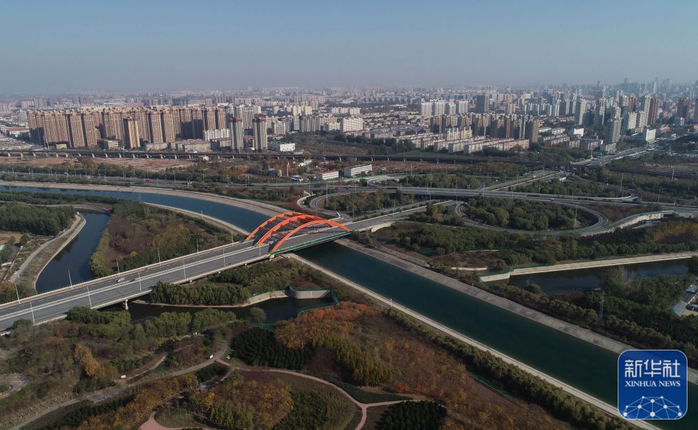 11月14日拍摄的石家庄市境内的南水北调中线工程(无人机照片)。新华社记者 杨世尧 摄