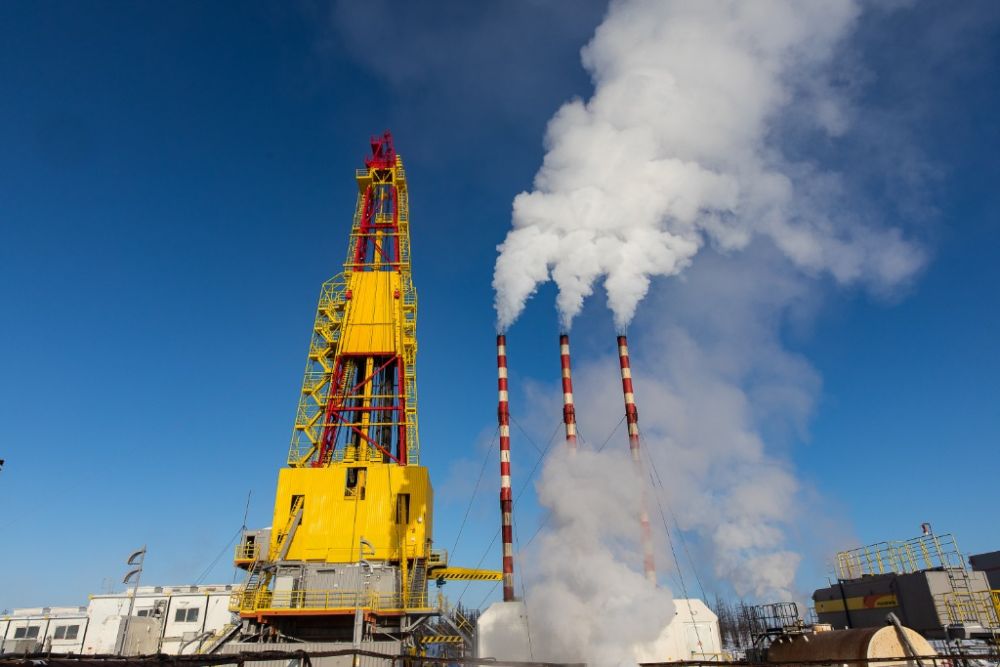 这是2019年2月27日在俄罗斯克拉斯诺亚尔斯克边疆区的万科尔油田拍摄的钻井现场。(新华社记者白雪骐摄)