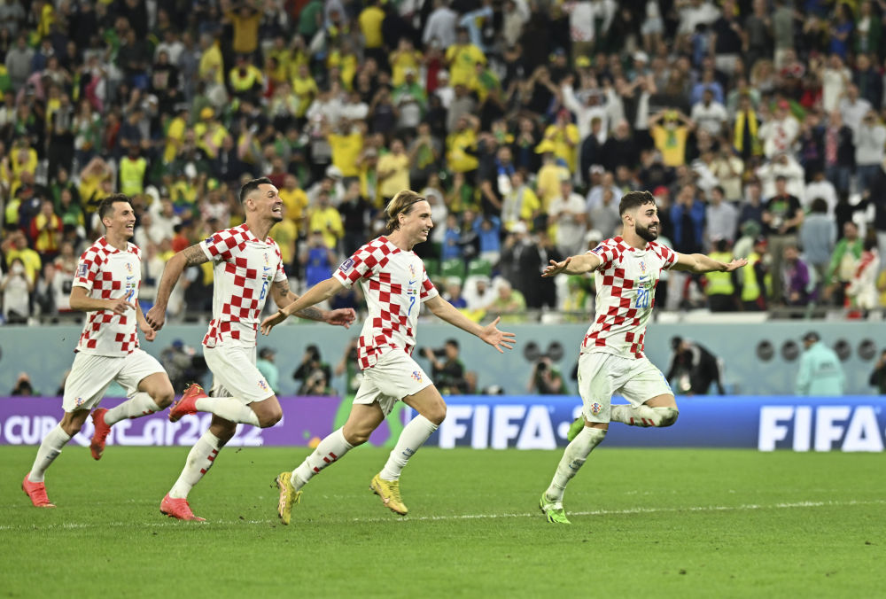 佩特科维奇第117分钟的进球帮助克罗地亚队以1:1扳平比分,继16强赛淘汰日本队后,克罗地亚人连续第二场面对加时赛和点球大战。为克罗地亚立功的又是门将利瓦科维奇,他在点球大战第一轮扑出了罗德里戈的射门,随着巴西队马尔基尼奥斯在第四轮点球中柱弹出,克罗地亚队以4:2的点球比分获胜。