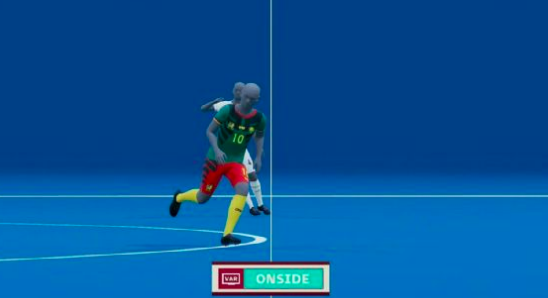 随后VAR给出了由半自动越位识别技术3D重建的画面,显示阿布巴卡尔没有越位。