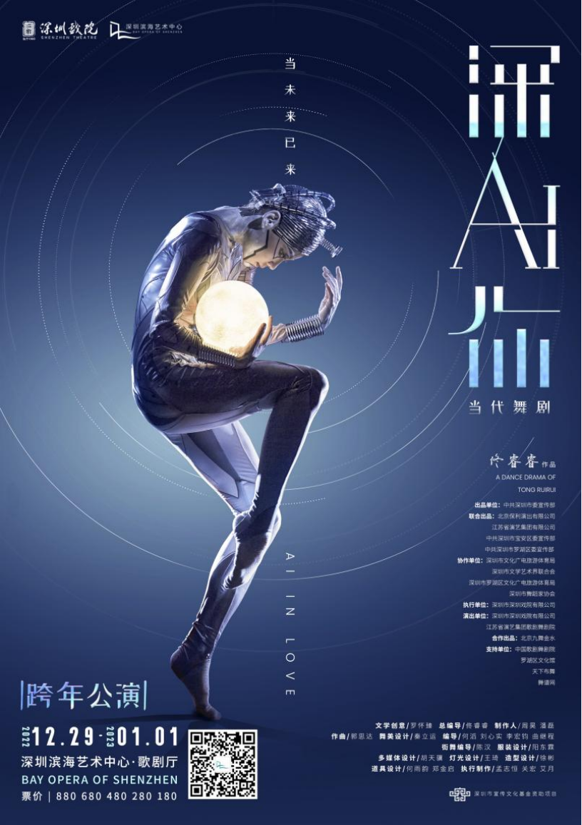 由中共深圳市委宣传部出品,北京保利演出有限公司、江苏省演艺集团、中共深圳市宝安区委宣传部、中共深圳市罗湖区委宣传部联合出品,深圳戏院制作并联合江苏省演艺集团歌剧舞剧院出演的中国首部人工智能题材当代舞剧《深AI你》将于今年元旦贺岁档在深圳滨海艺术中心拉开公演帷幕,且于明年开启全国巡演,欢迎你加入我们,一起走进剧场,一起探究人与AI未来世界!